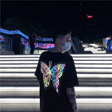 Unique and outstanding, our Oversized T-Shirt features a one-of-a-kind Butterfly Design printed on the finest cotton with our iridescent Holographic Garments.