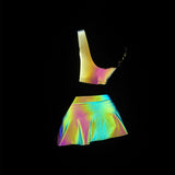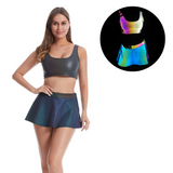 Get ready to turn heads and light up your festival experience with our Holographic Skirt and Top set! Made from our exclusive, holographic garments that shine in all colors of the rainbow, this set is the ultimate solution for anyone looking to stand out in the crowd.