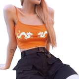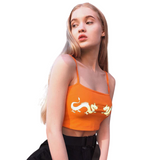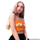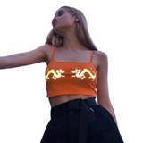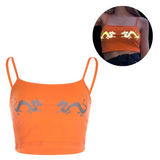Our Reflective Crop Top in our Dragon Design is low-key until you don't want it to be. The Crop Top is in an eye-catching orange, but when it reflects any kind of light, the Reflective Dragon print comes to life in a bright color mix between silver and white. It looks like it is from another dimension.