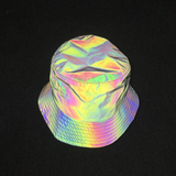 Our Holographic Bucket Hat is low-key until you don't want it to be. The Bucket Hat is in a smooth grey, but when it reflects any kind of light, it comes to life in all colors of the rainbow. It looks like it is from another dimension.