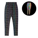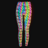 Our Holographic Leggings with our Waves Pattern Design are low-key until you don't want them to be. The Leggings are in a smooth grey, but when they reflect any kind of light, they come to life in all the colours of the rainbow, and it looks like they are from another dimension.