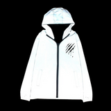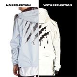 Our Reflective Jacket in our latest "Claws" Design is low-key until you don't want it to be. The Jacket is in a smooth grey, but when it reflects any kind of light, it comes to life in a bright color mix between silver and white. It looks like it is from another dimension.