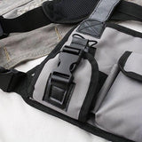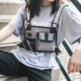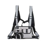 Our Reflective Chest Rig is low-key until you don't want it to be. The Chest Rig is in a smooth grey, but when it reflects any kind of light, it comes to life in a bright color mix between silver and white. It looks like it is from another dimension.