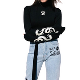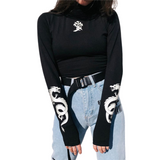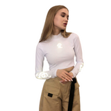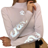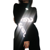 Our Reflective Crop Top in our Dragon Design is low-key until you don't want it to be. The Crop Top is available in white and black. When it reflects any kind of light, the Reflective Dragon print comes to life in a bright color mix between silver and white. It looks like it is from another dimension.