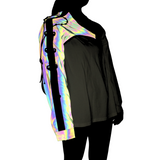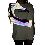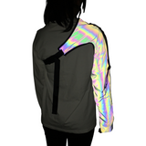 Our Holographic Sleeve is low-key until you don't want it to be. The Sleeve is in a smooth grey, but when it reflects any kind of light, it comes to life in a bright color mix of all the colors of a rainbow. It looks like it is from another dimension.